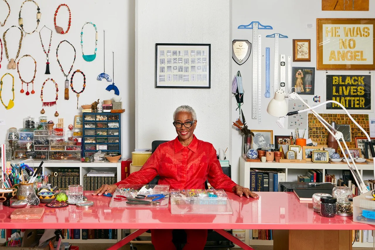 Her public works include the San Francisco Bayview Police Station Public Lobby and Community Conference Room, an entry wall mural in the Sacramento Pannell Meadowview Community Center, Gothic/Kuba Glass Window Panels I–IV in the City University of New York's Sheppard Hall, and African Textiles Glass Panels I–V in the Atlanta Hartsfield Airport’s T Terminal. She is a former board member at several museums as well as a participant in the first site-specific artist residency in the U.S.—Capp Street Project. In 2023, she joined the Executive and Finance Boards of the Museum of Arts & Design (MAD) in New York City for a second term.
